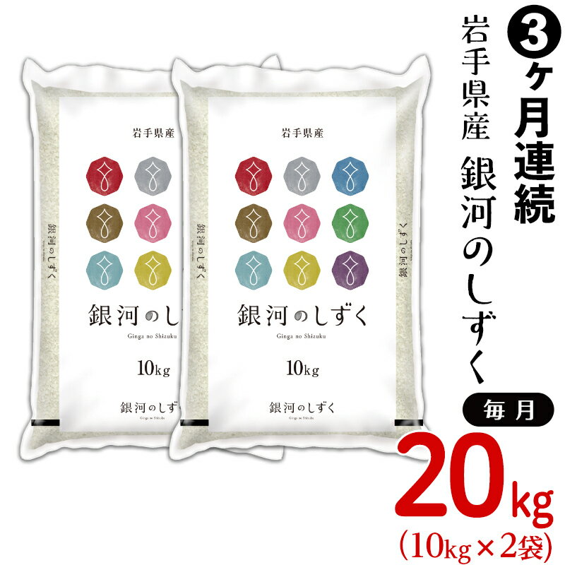 【ふるさと納税】定期便 米 20kg 白米 令和2年 R2-G20-3N【3ヶ月連続お届け】岩手県産銀河のしずく20kg(2年産)