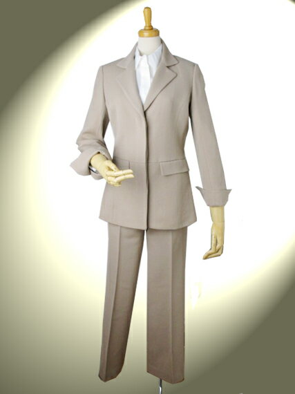 【50%OFF】ストレッチウール ロングジャケット パンツスーツ ベージュ レディース スーツ パンツ セットアップ キャリア 入学式 卒業式 ビジネススーツ レディース パンツスーツ 冬
