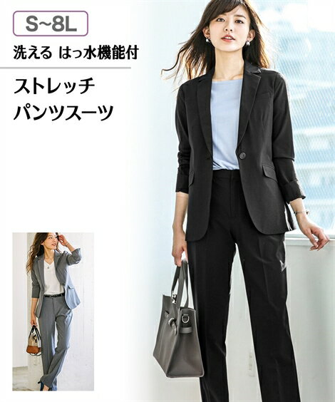 【5日はポイント5倍】スーツ レディース パンツスーツ 送料無料 S-8L 洗える ストレッチ 大きいサイズ はっ水 裏地無し 夏 ストレートパンツ ニッセン 軽量 s0