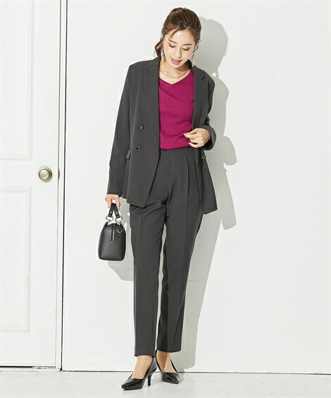 ・ベーシックなノーカラー&テーパードのセットなので、着こなししやすくクールに決まる♪