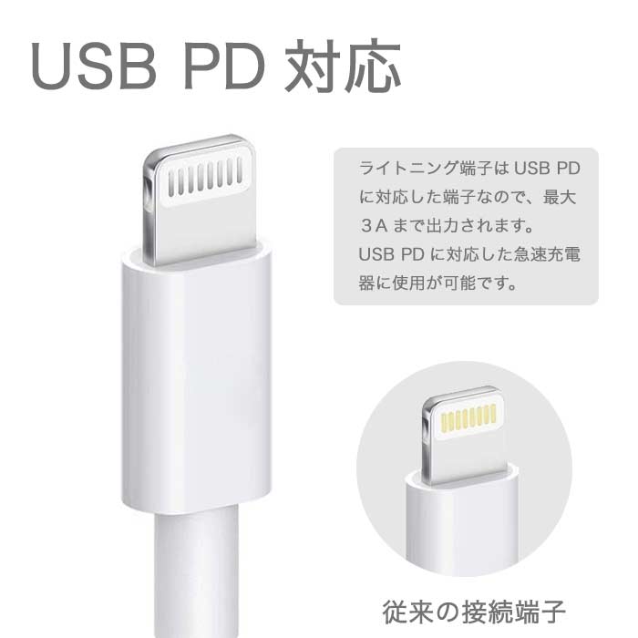 【PD3.0対応】USB-C Lightning ケーブル iPhone iPhone Xs iPhone 12 PowerDelivery 急速充電 出力3A ライトニング Type-C タイプC iPhoneケーブル