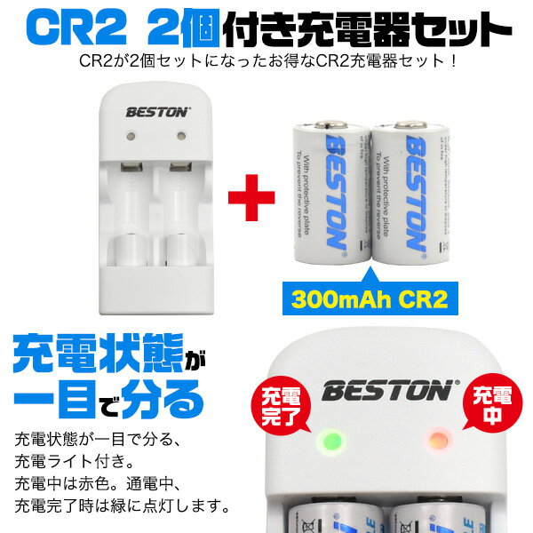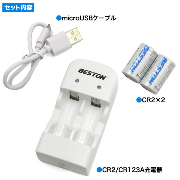 【送料無料】【CR2 2個付き/CR2 USB充電器】バッテリー camera 予備用 充電ライト付き 2本充電 microUSBケーブル USB電源 バッテリーチャージャー カメラ用リチウム電池